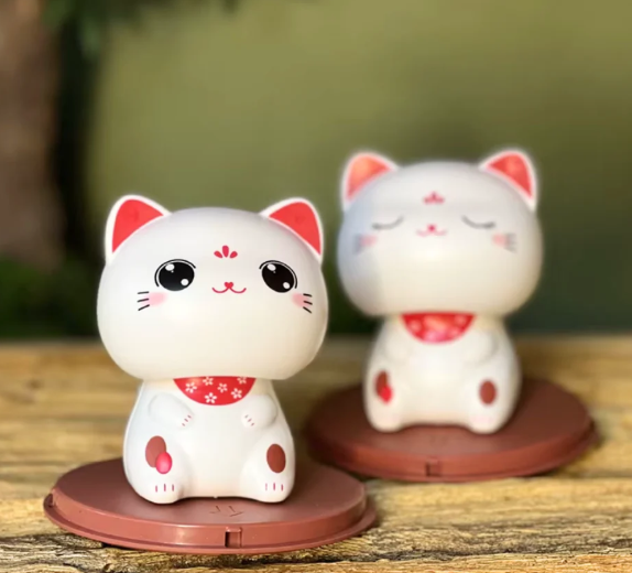 Fortune Cat Wobble Head Eyes Open Kawaii 9cm