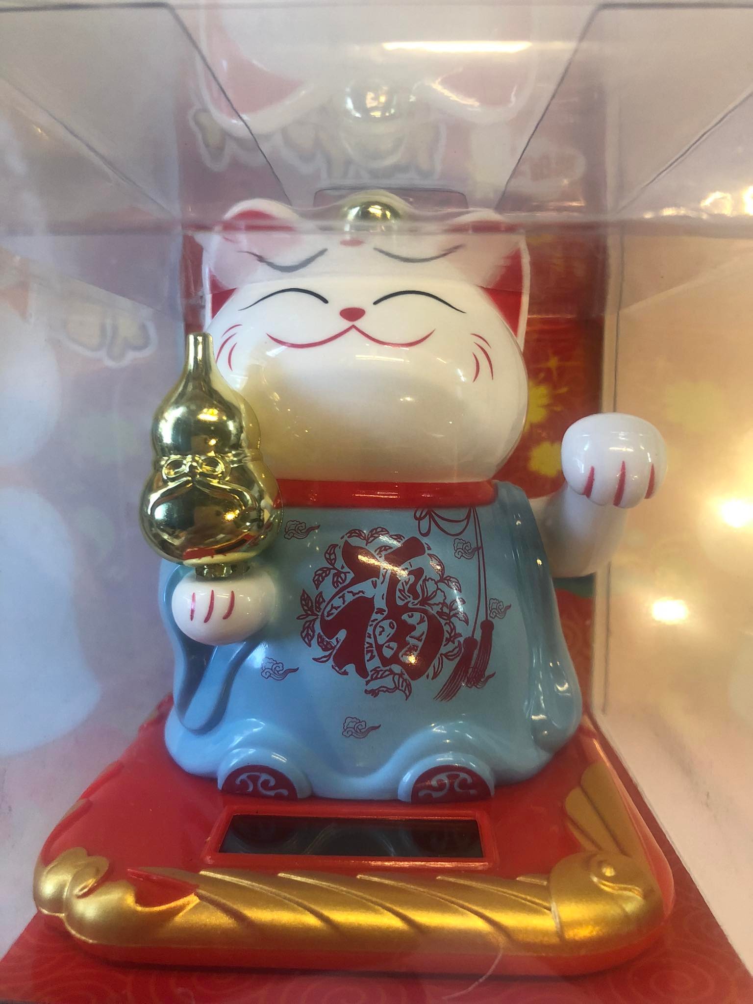 Fortune Waving Lucky Cat Blue Dress Solar 10.5 cm 1 piece