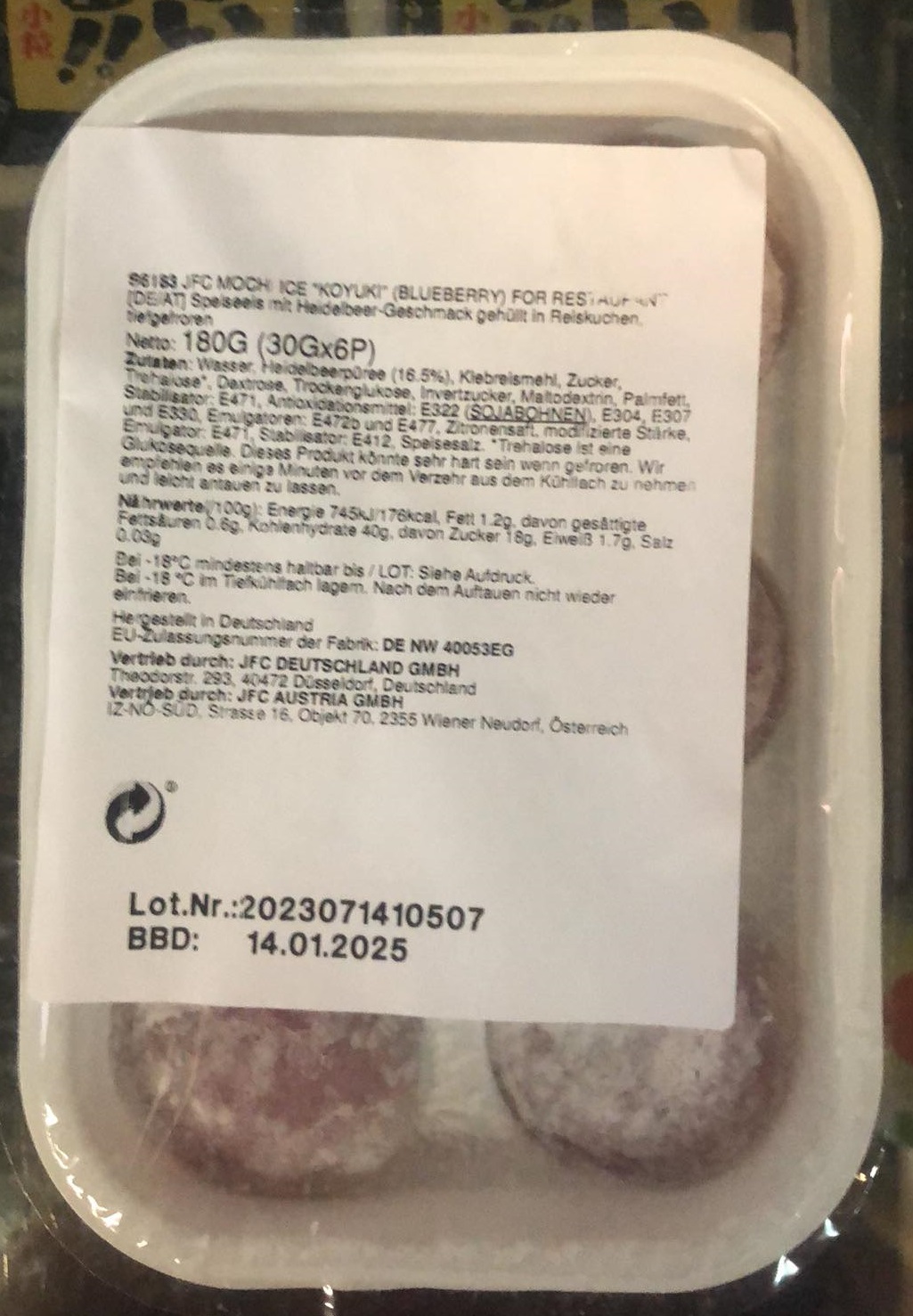 Frozen Mochi Ice Blueberry Koyuki JFC 6 pieces 180g