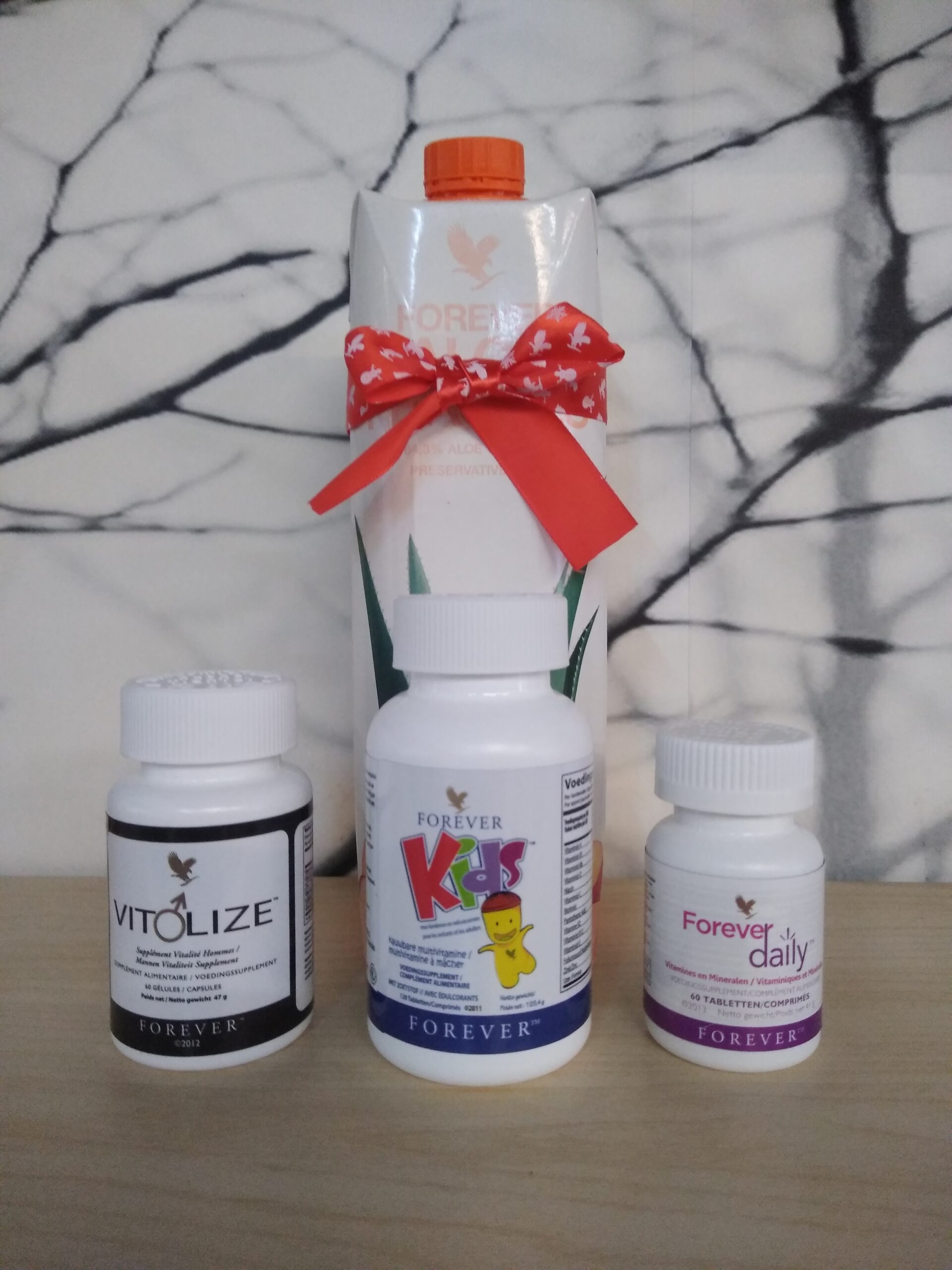 ‘- In deze combo bevat er : * 1 pure 84,3 % geconcentreerd Aloë Vera drank met smaak Perzik * 1 vitamine voor kids * 1 daily multi Vitaminen voor mama * 1 vitamine voor papa- Collectie van pure Aloë Vera vo deluxe merk Forever van USA- Mogelijk levering aan huis (5€ verzendkost in België, gratis vanaf 50€, 2-3 werkdagen)- Mogelijk afhalen aan de winkel (gratis)- 2 kortingsbonnen t.w.v 6€ voor workshop ingangstickets inbegrepen- 2 bonnen t.w.v 4€ voor verse producten onbegrepen