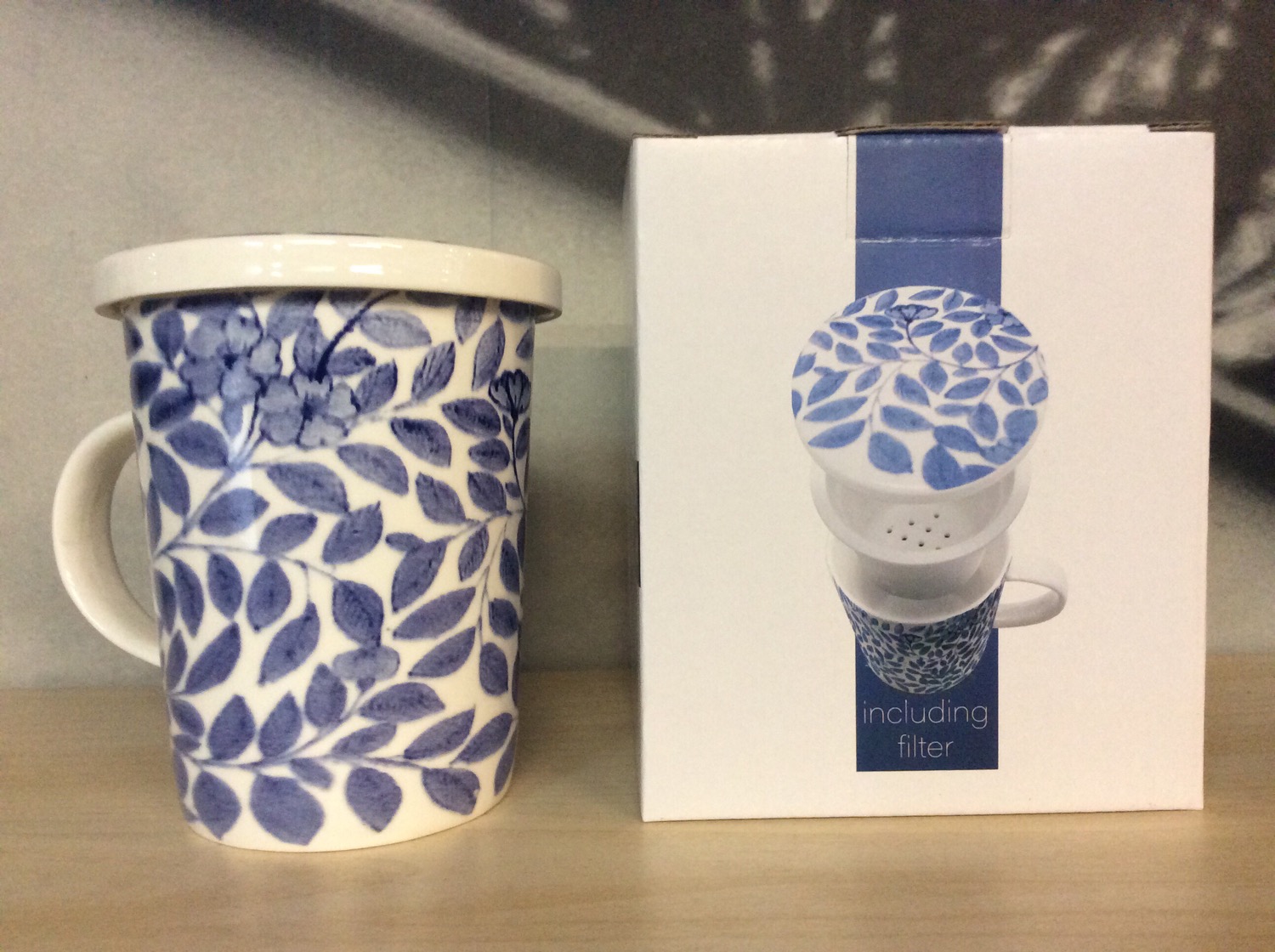 Royal Tea Cup Porcelain Blue Leaves with Filter 300ml